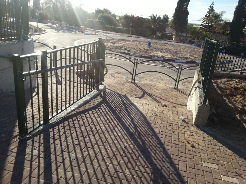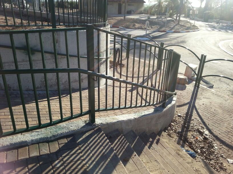 ביצוע גידור משולב מעקה הולכה דגם קשת מאחזי יד וגדר דגם סיון בוצע עבור חברת עשוש מאיר ובניו בעמ יזם : מושב בנגב מטרת הגידור : ביצוע מעקות בפיתוח הכיכר + מאחזי יד + גידור הפרשי גבהים