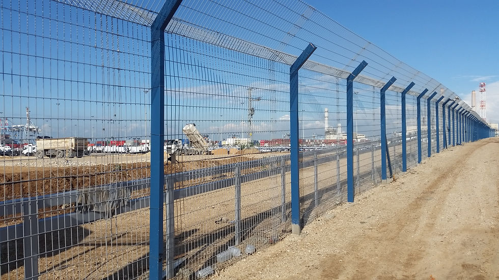 ביצוע גידור דגם סנפיר עם מסרק בקרקע בוצע: עבור חברת אחים רחמה יזם : נמל אשדוד מטרת הגידור : בטחוני גדר המתחילה ממטר בתוך הקרקע עד 3.5 מטר מעל הקרקע מתוחה לאפשרות התקנת גלאי תזוזה של הגדר